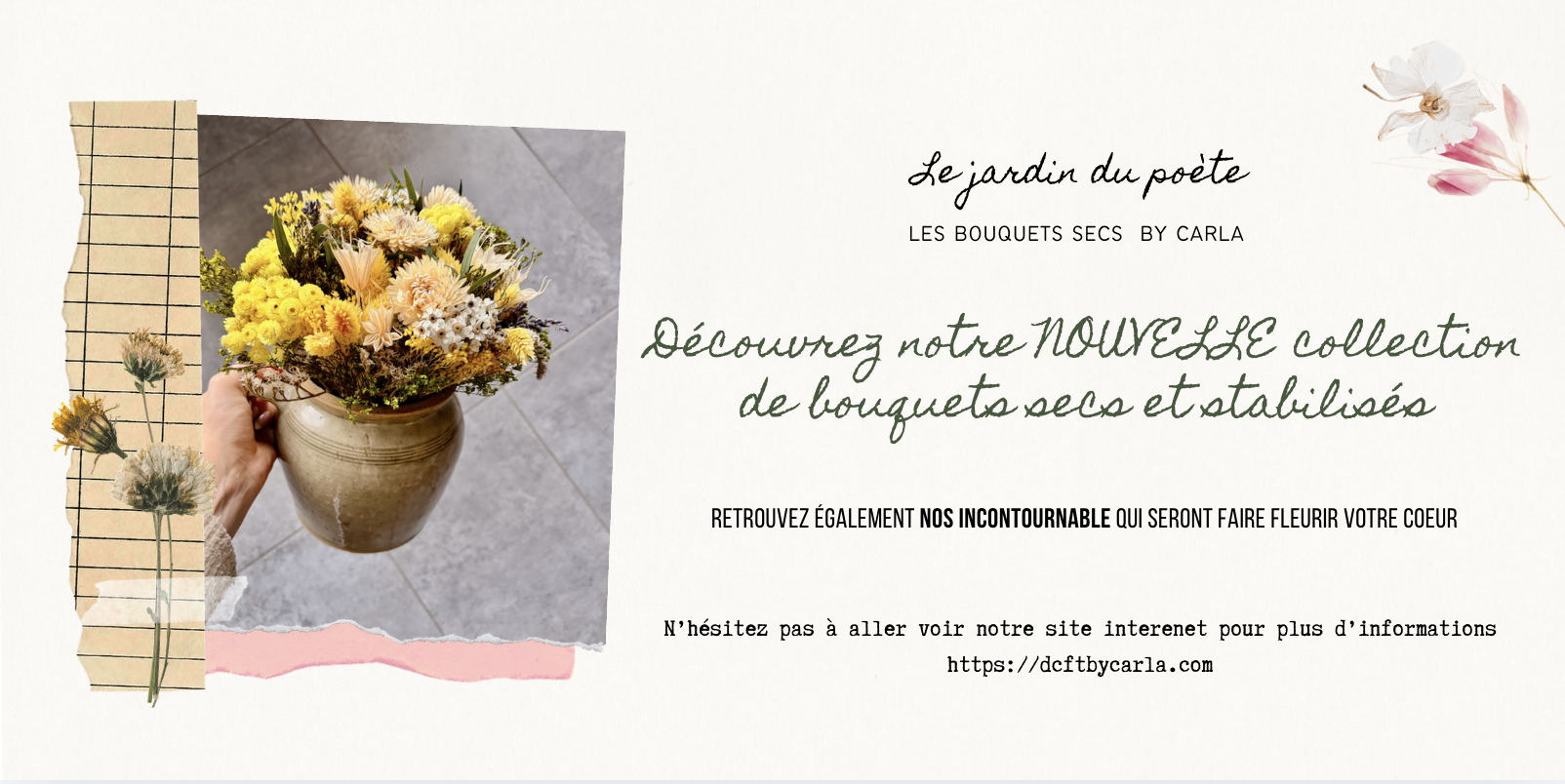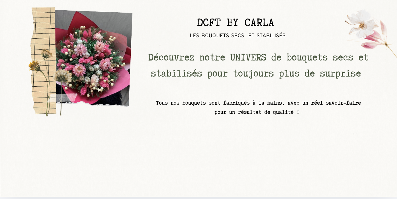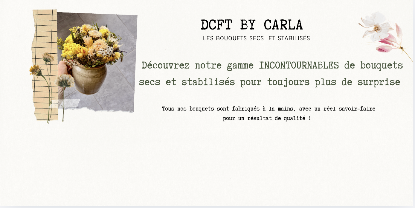 Les bouquets de fleurs séchées et stabilisées DCFT by Carla sont sélectionnés avec soin pour offrir une décoration naturelle, élégante et durable, sans entretien particulier. Ils sont parfait pour embellir votre intérieur ou pour offrir un cadeau qui dure dans le temps.